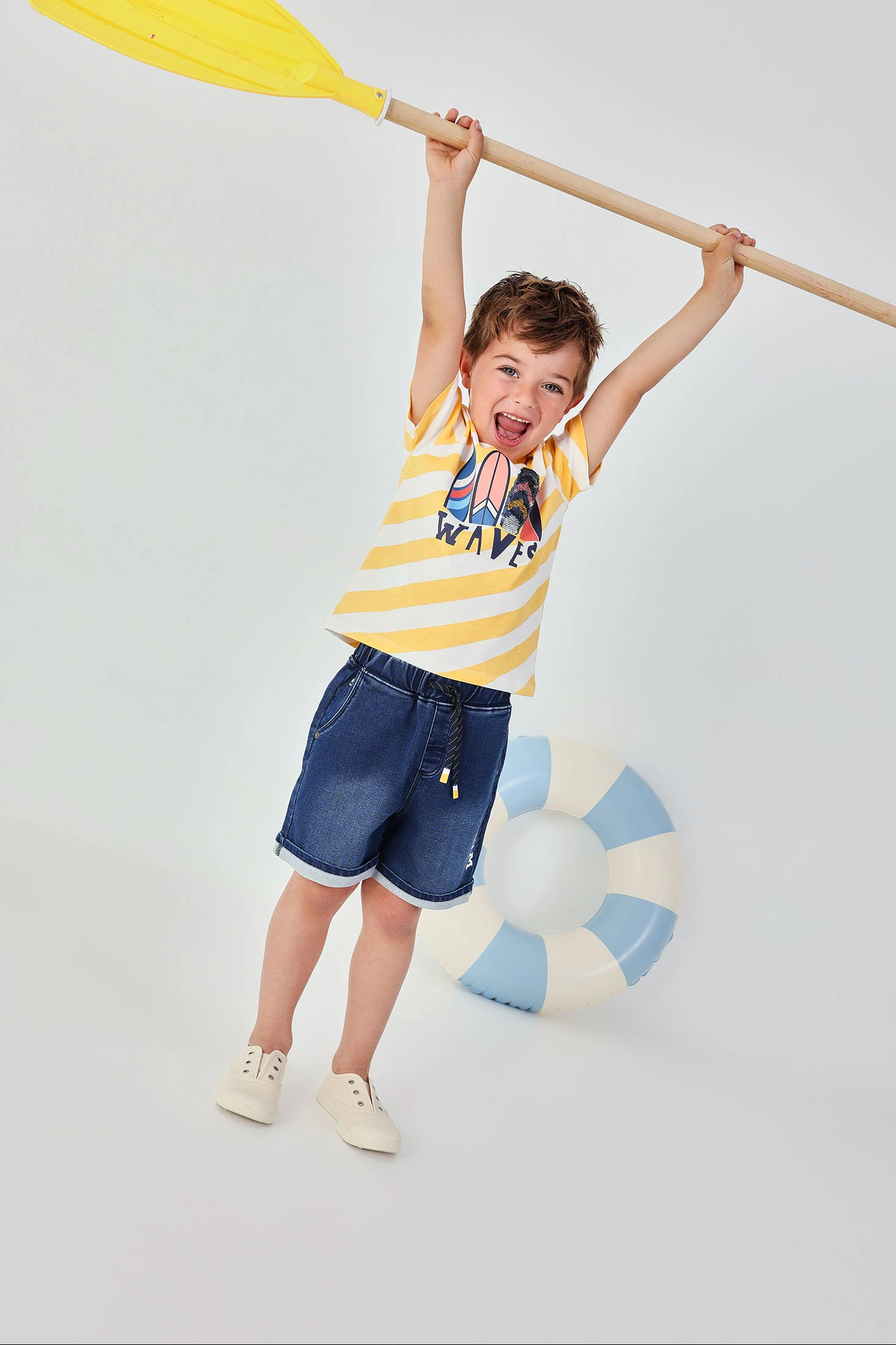 Bermudas denim en color azul oscuro, proporcionan un estilo casual y cómodo. Diseñadas con un tejido de punto que garantiza libertad de movimiento, presentan un diseño sencillo con bolsillos funcionales y una cintura ajustable con cordón. Las tallas disponibles van desde 12 meses hasta 10 años. Ideales para combinar con camisetas de colores vivos para un look veraniego y versátil, su material es resistente, lo que las convierte en una opción práctica para el uso diario.