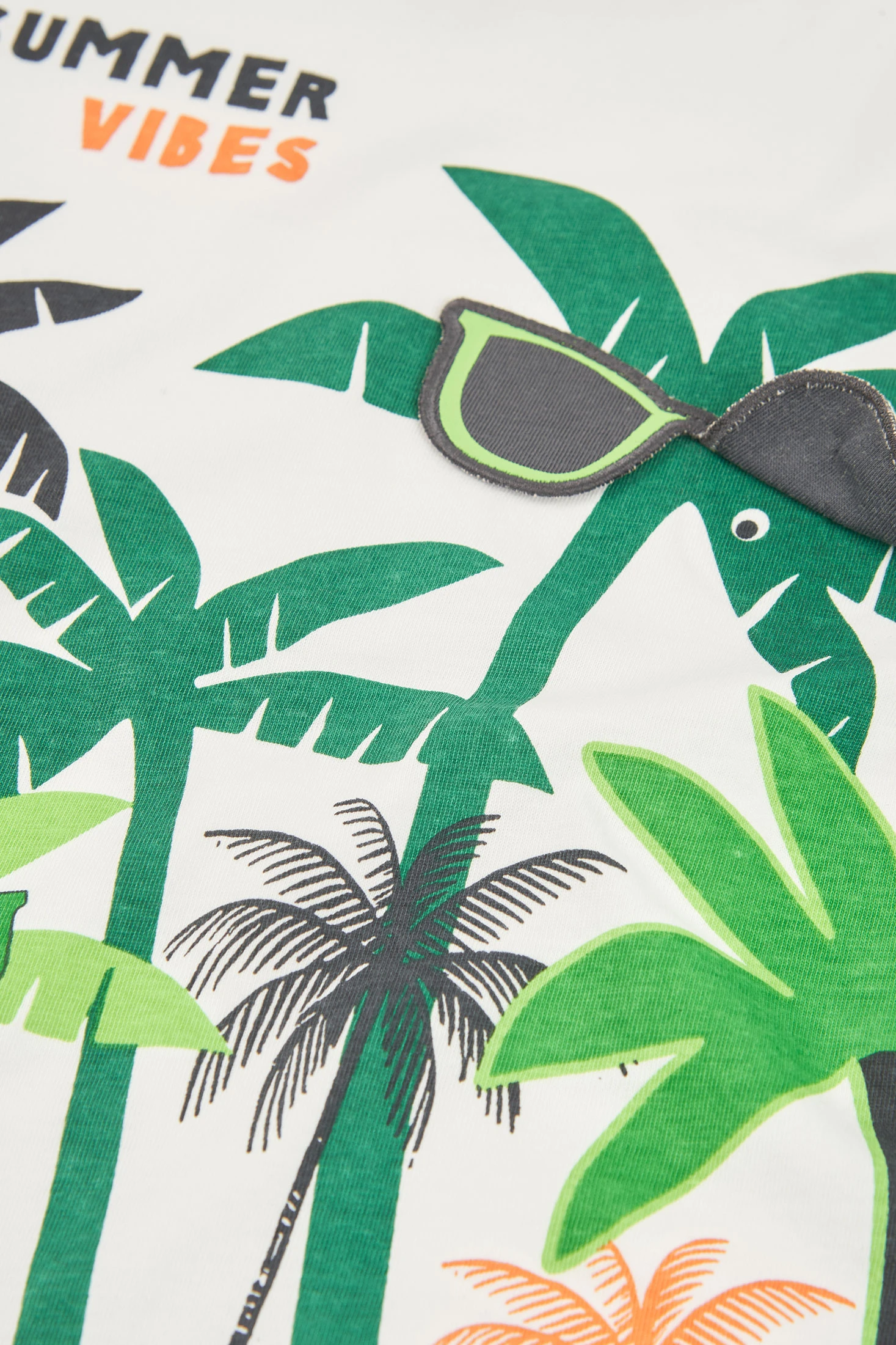 Camiseta de algodón para niño de color blanco. Con un gran estampado divertido y con detalles aplicados.Su tejido de algodón garantiza frescura y comodidad, perfecto para el uso diario. Disponible en tallas desde 12 meses hasta 10 años, ofrece flexibilidad para adaptarse al crecimiento de tu pequeño. El corte clásico y el cuello redondo la hacen fácil de combinar con distintos estilos de ropa, agregando un toque divertido a su atuendo diario.