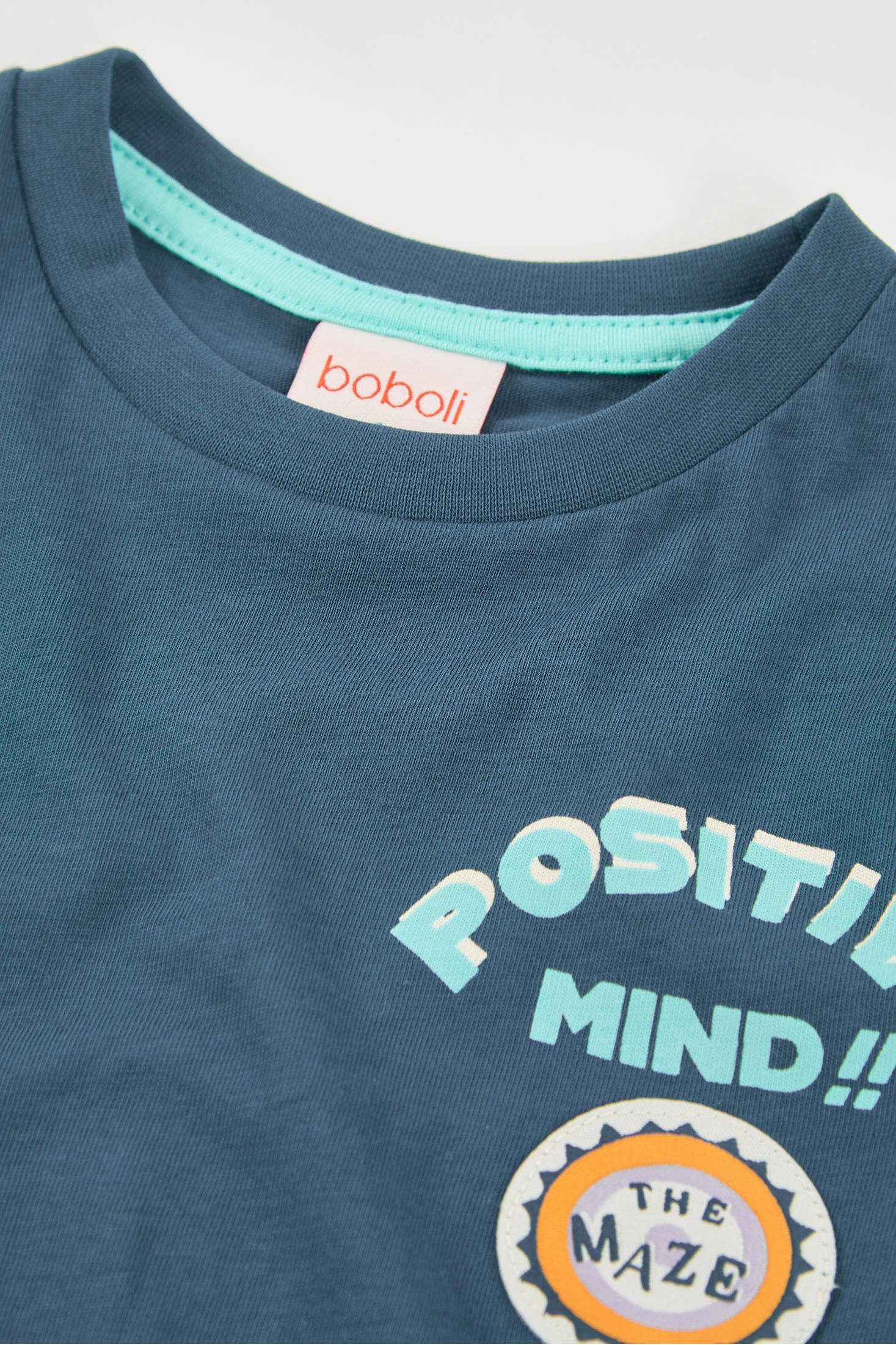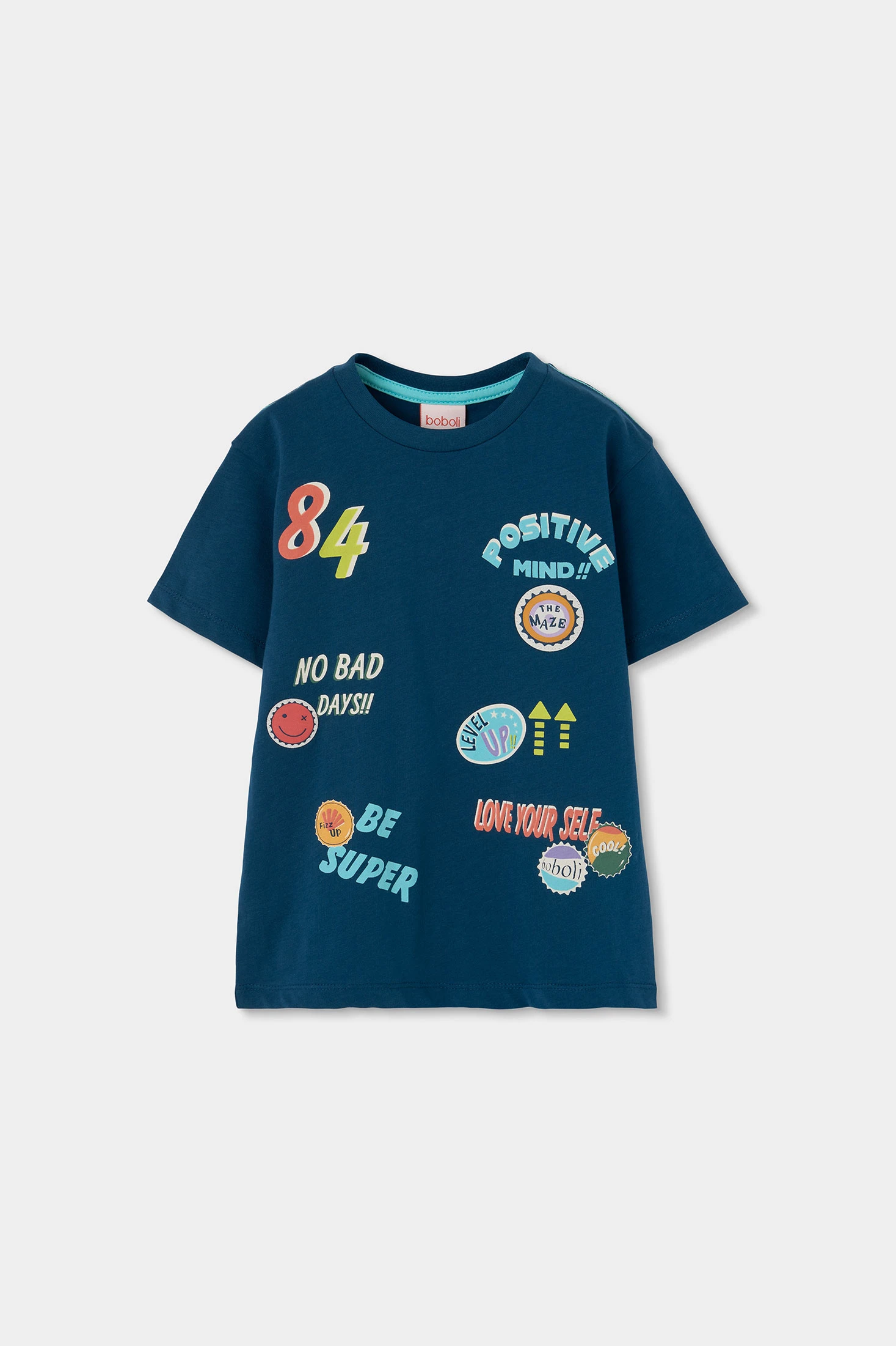 Camiseta de punto de algodón para niño, perfecta para el uso diario gracias a su comodidad y versatilidad. Tiene un vibrante color azul marino y muestra un diseño divertido con varias frases motivacionales y números coloridos. Disponible en tallas desde 12 meses hasta 10 años, esta prenda se adapta a diversas edades y etapas de crecimiento. Su cuello redondo y mangas cortas facilitan su combinación con otras prendas, convirtiéndola en una opción estilosa y práctica para cualquier ocasión.