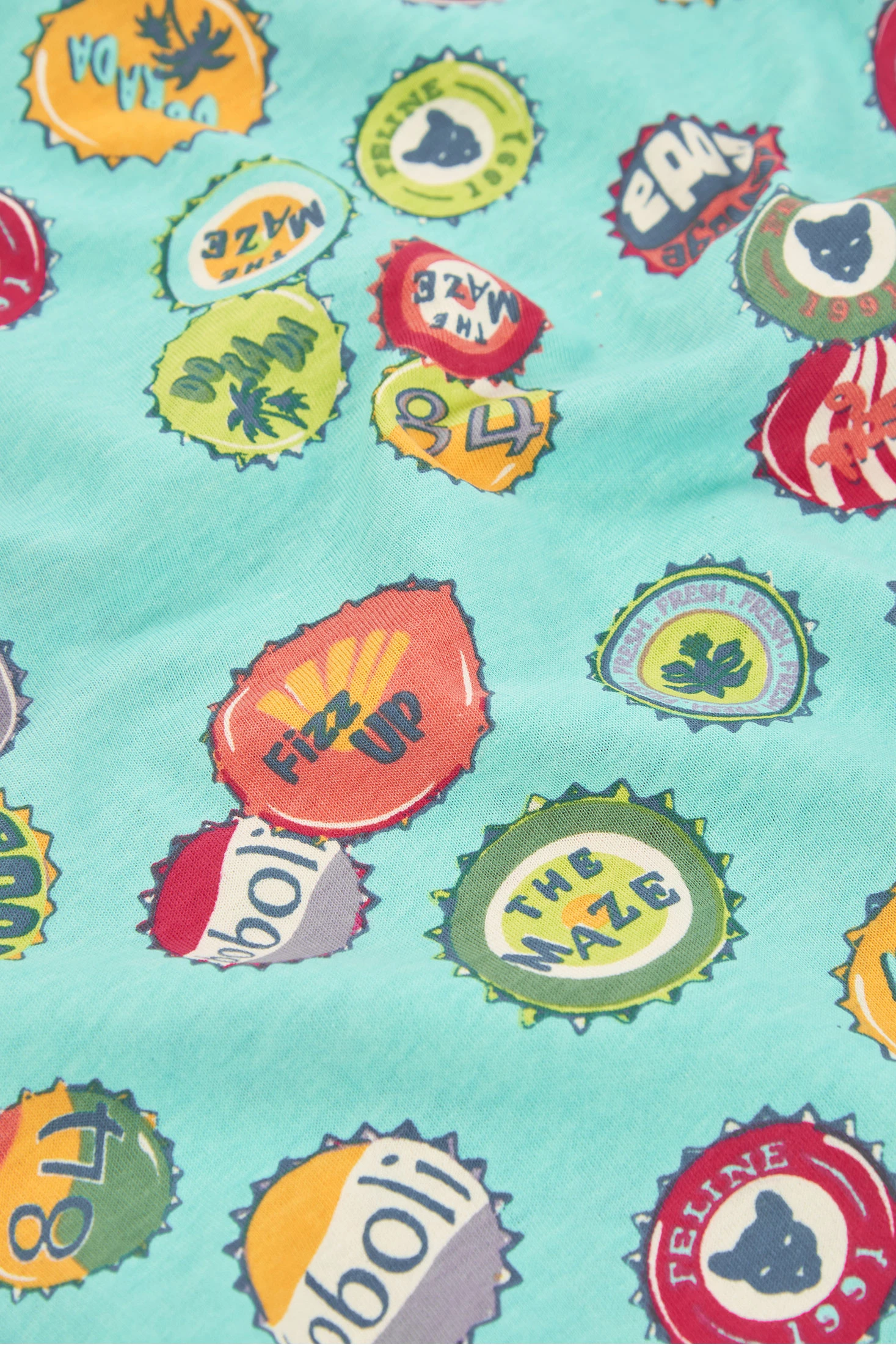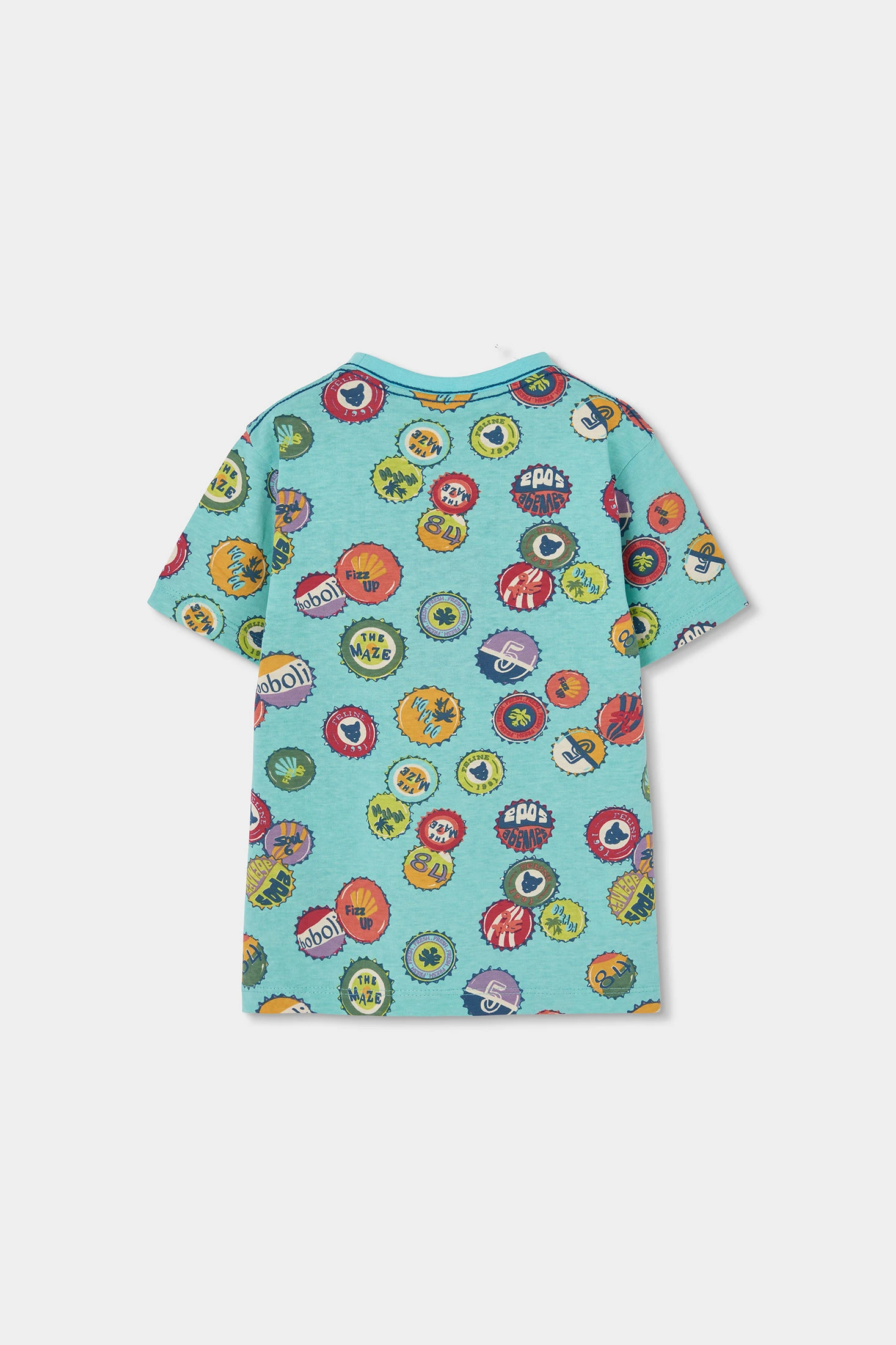 Camiseta de algodón estampado para niño ideal para los más pequeños. Disponible desde 12 meses hasta 10 años, se adapta al crecimiento de tu hijo. Su diseño cuenta con coloridos estampados de chapas y logotipos sobre un fondo azul claro, añadiendo un toque divertido y moderno. El material de algodón asegura confort y suavidad para el uso diario. Con un cuello redondo y mangas cortas, es una prenda versátil que combina fácilmente con jeans o pantalones cortos, haciendo que tu pequeño luzca fresco y a la moda.