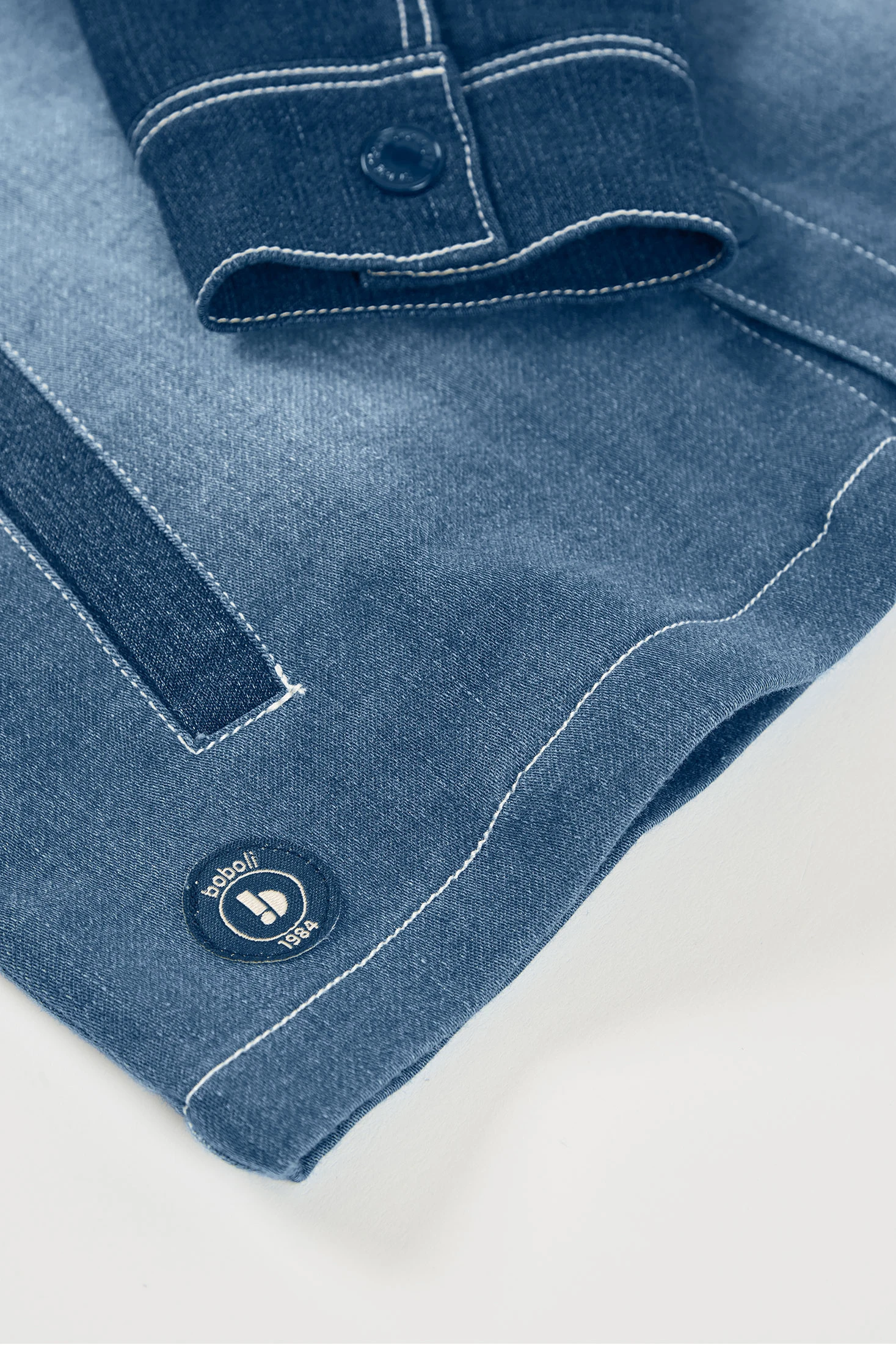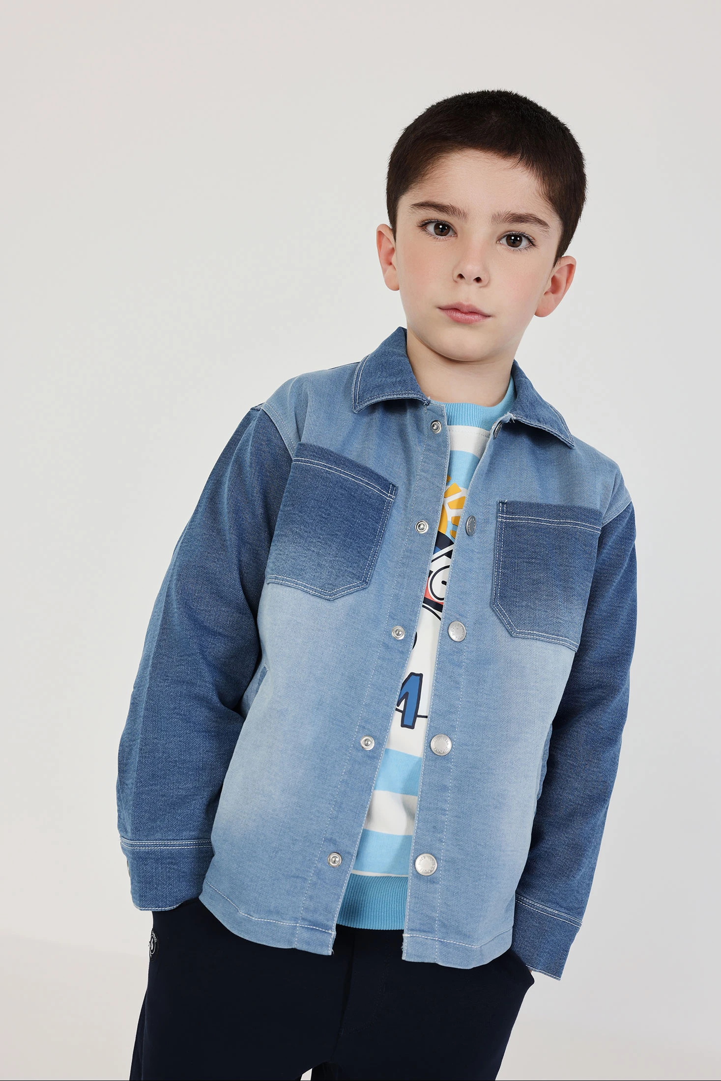 Sobrecamisa denim azul para niño, perfecta para la temporada de entretiempo. Confeccionada en tejido denim suave, ofrece comodidad y un estilo casual. Presenta un diseño minimalista con bolsillos frontales y botones al frente, ideal para un look moderno. Mangas largas y cuello clásico aportan un toque elegante. Disponible en tallas desde los 12 meses hasta los 10 años. Perfecta para combinar con camisetas básicas, es una prenda versátil para el día a día.