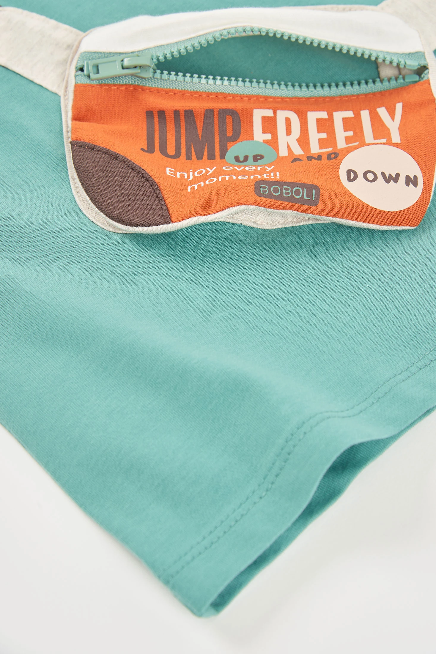 Camiseta de punto de algodón verde, ideal para niños, que destaca por un gráfico divertido que simula una riñonera, aportando un toque original. Disponible en tallas desde 12 meses hasta 10 años, cubre una amplia gama de edades. El material suave y ligero garantiza comodidad durante todo el día. Perfecta para combinaciones casuales, esta camiseta de manga corta es adecuada para cualquier actividad al aire libre.