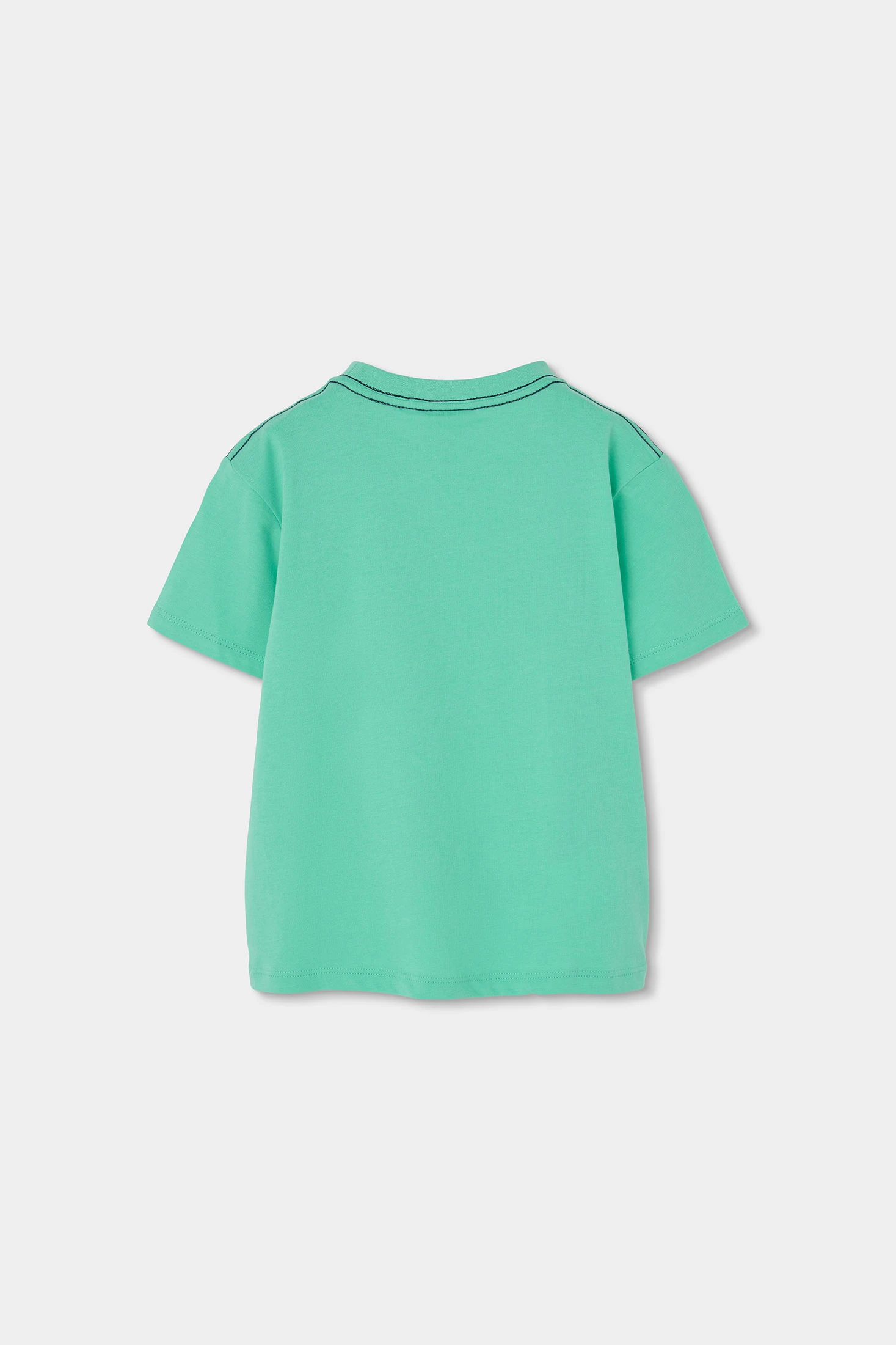 Camiseta de algodón verde para niño, perfecta para el uso diario durante el verano. Presenta un divertido diseño de gafas de buceo con un estampado de elementos marinos y animales acuáticos, ideal para los pequeños exploradores. Su tejido de algodón es suave y transpirable, proporcionando comodidad durante todo el día. Las tallas disponibles van desde 12 meses hasta los 10 años. Con su cuello redondo y mangas cortas, es una prenda versátil que se puede combinar fácilmente con pantalones cortos o jeans para un look casual y fresco.