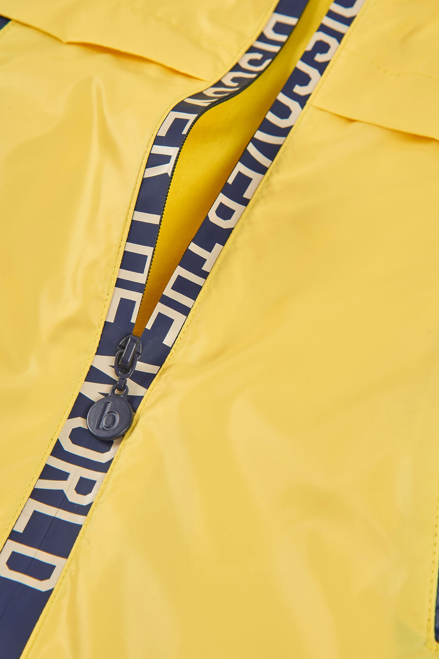 Parka amarilla para niño, fabricada con tejido técnico, perfecta para el entretiempo. Ofrece protección y comodidad, ideal para actividades al aire libre. Diseñada para edades desde 12 meses hasta 10 años, esta prenda destaca por su capucha, cierre de cremallera y detalles en azul marino. Mensaje en la cremallera le añade un toque aventurero. Su estilo versátil permite combinarla fácilmente en el día a día.