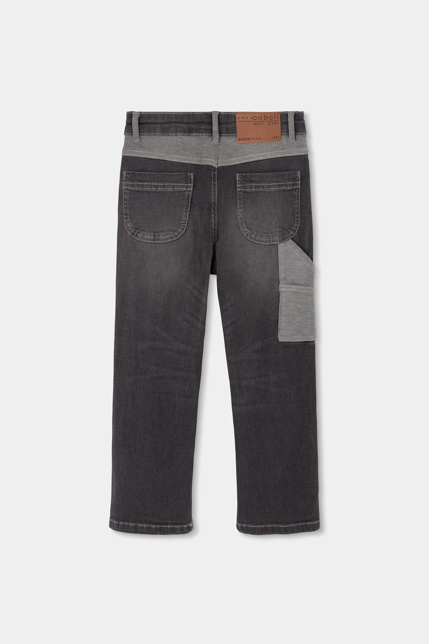 Pantalón denim gris para niño, ideal para un look casual y moderno. Confeccionado en un material resistente y cómodo, es perfecto para el uso diario. Su diseño liso y versátil permite combinarlo fácilmente con diferentes prendas. Disponible en tallas desde 2 años hasta 14 años, se adapta a diversas edades y etapas de crecimiento. Destaca su corte clásico de cinco bolsillos, ofreciendo funcionalidad y estilo a partes iguales, mientras que su color gris lo convierte en una opción práctica para cualquier ocasión.