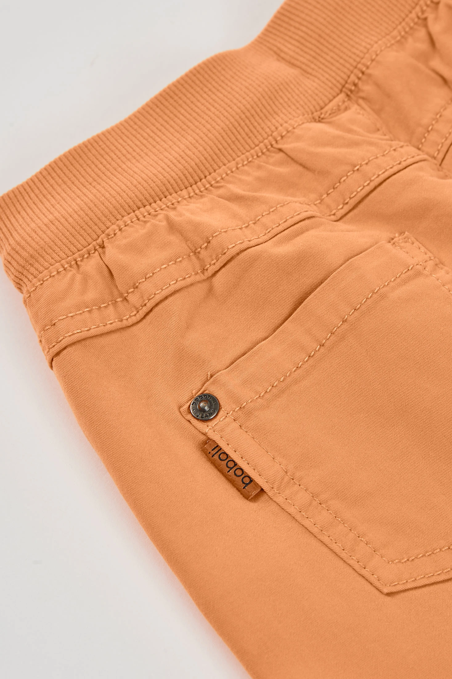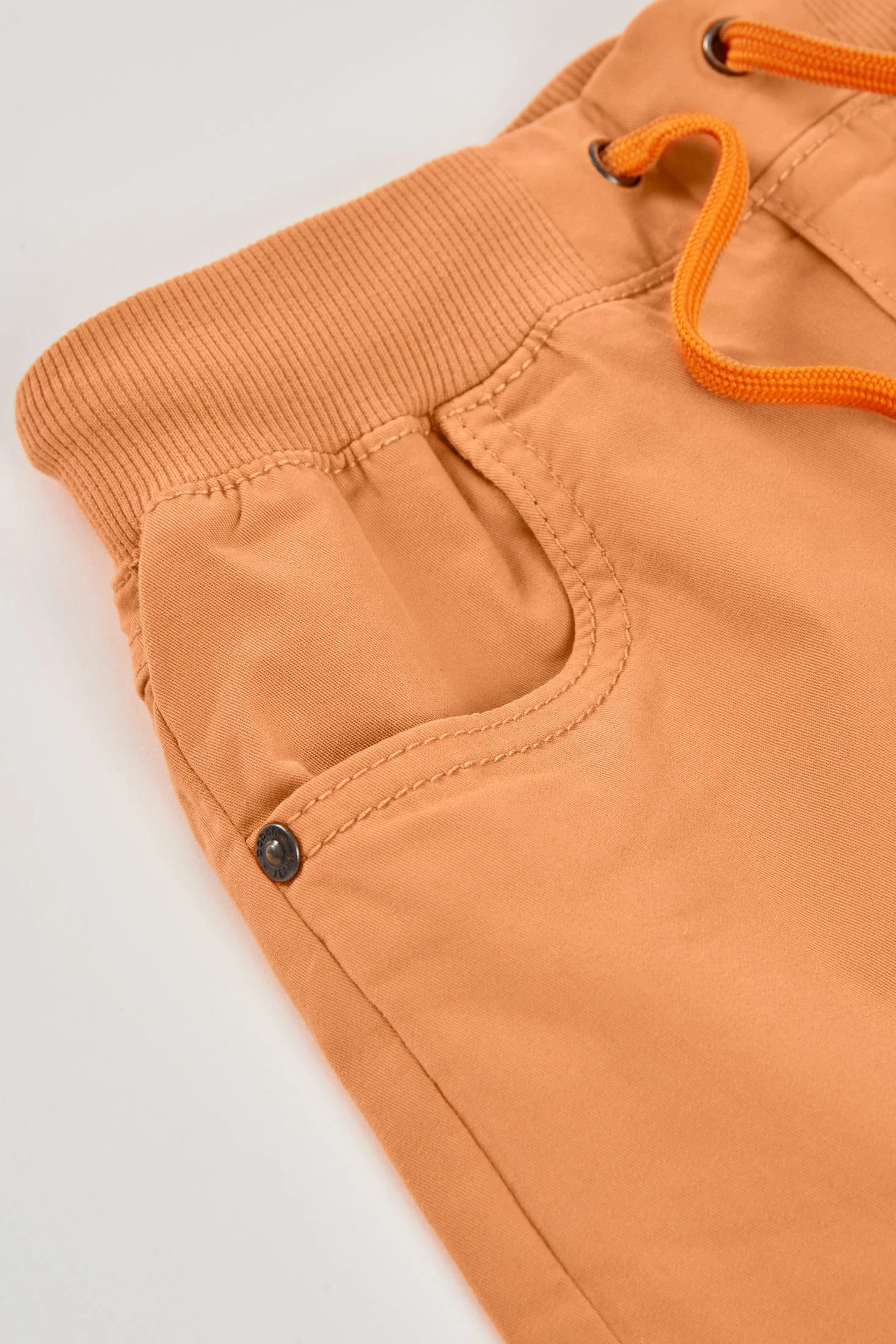Bermudas de algodón en color naranja, perfectas para los días cálidos. Su diseño sencillo y cómodo incluye una cintura elástica con cordones ajustables, lo que facilita un ajuste perfecto. Con un corte clásico, son ideales para combinar con camisetas y camisas ligeras. Disponibles en tallas de 12 meses hasta 14 años, se adaptan al crecimiento de los niños. Su tejido de algodón proporciona frescura y comodidad durante todo el día, convirtiéndolas en una prenda esencial para el verano.