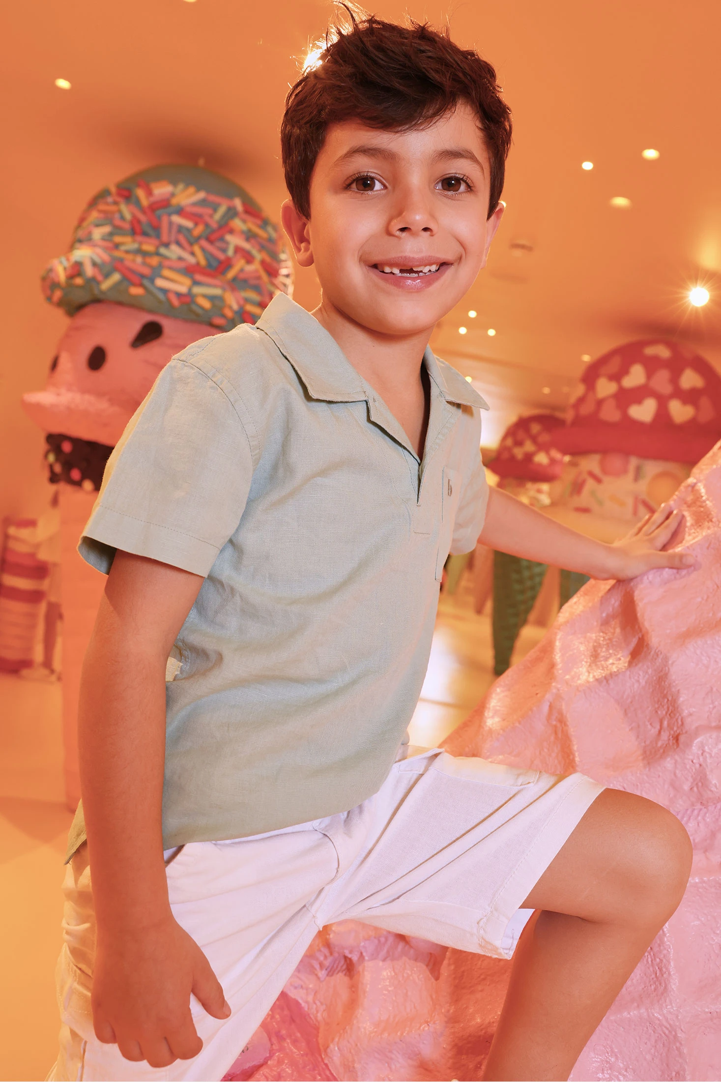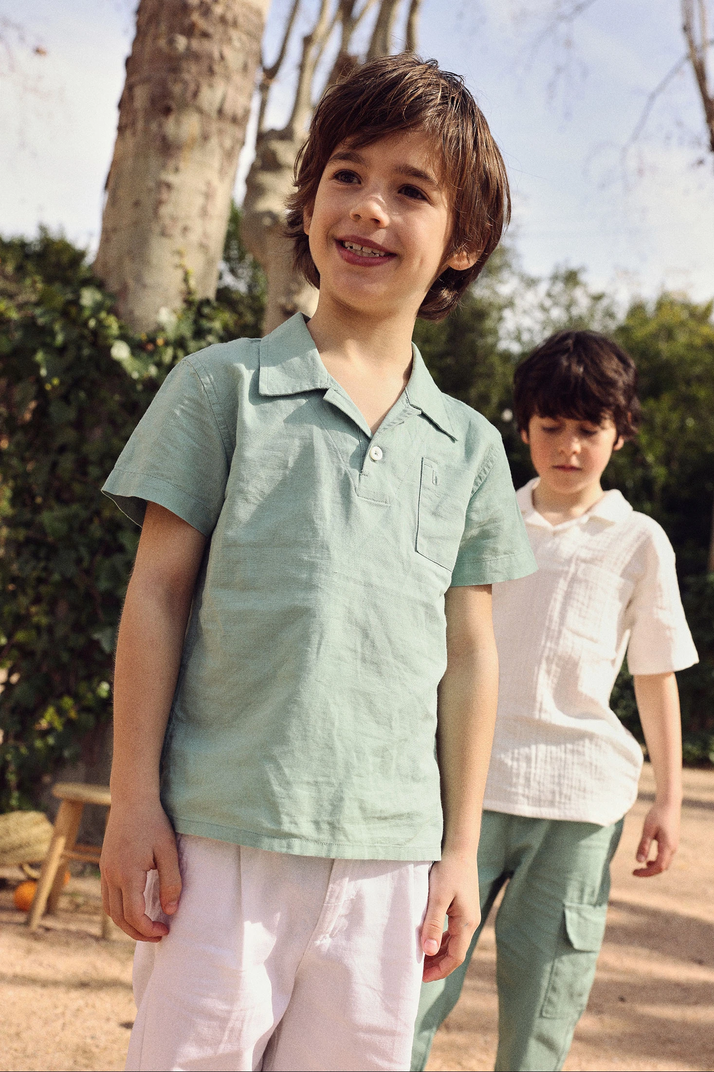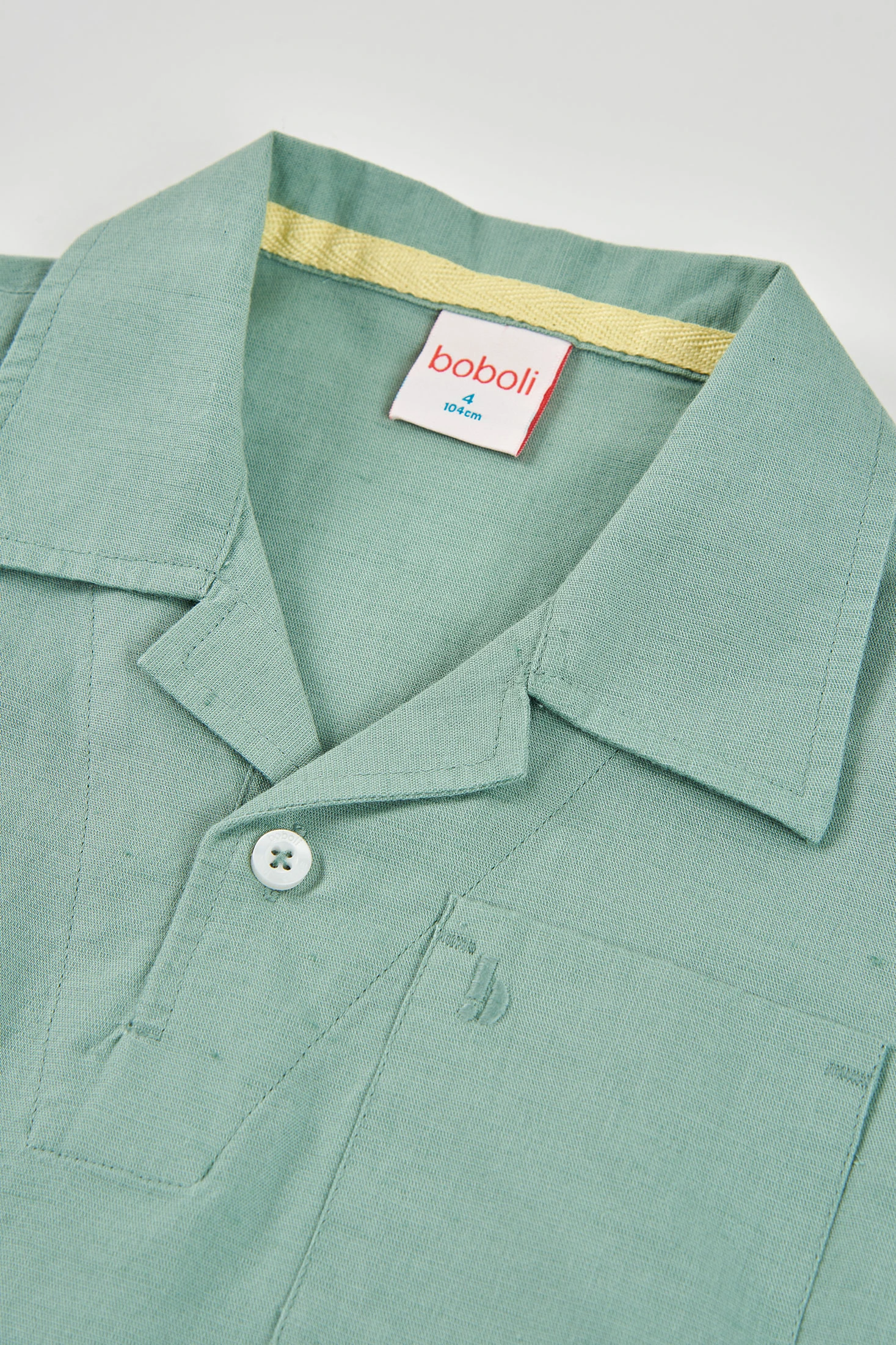 Polo de lino verde para niño ideal para un look fresco y cómodo. Su tejido de lino ofrece transpirabilidad, perfecto para los días más cálidos. Incluye un cuello clásico con cierre de botones y un práctico bolsillo en el pecho. Disponible en tallas desde 12 meses hasta 10 años, es adecuado para niños de diversas edades. El color verde pastel es versátil y fácil de combinar con diferentes estilos de ropa. Perfecto para ocasiones casuales o más elegantes, este polo es una elección estilosa y funcional para tu pequeño.