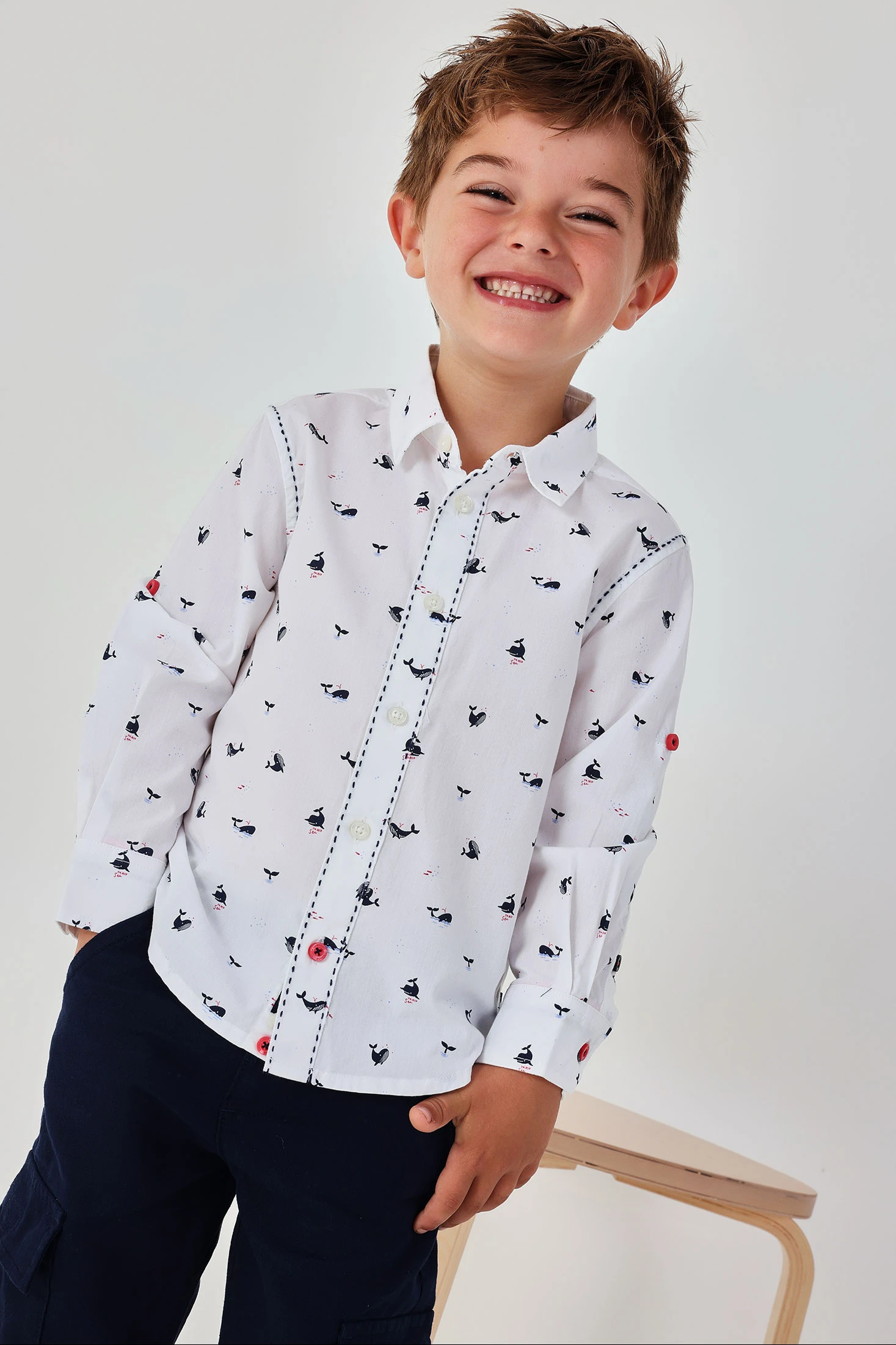 Camisa de popelín para niño que ofrece elegancia y comodidad. El diseño presenta un estampado de pequeños animales, añadiendo un toque divertido. Hecha de un material suave y ligero, es perfecta para mantener fresco a tu pequeño. Blanca, con detalles en azul marino y rojo, está disponible en tallas desde 12 meses hasta 10 años, adaptándose al crecimiento del niño. Su estilo versátil permite combinarla con pantalones formales o jeans, ideal para cualquier ocasión. Las mangas largas ofrecen comodidad en diversas estaciones.