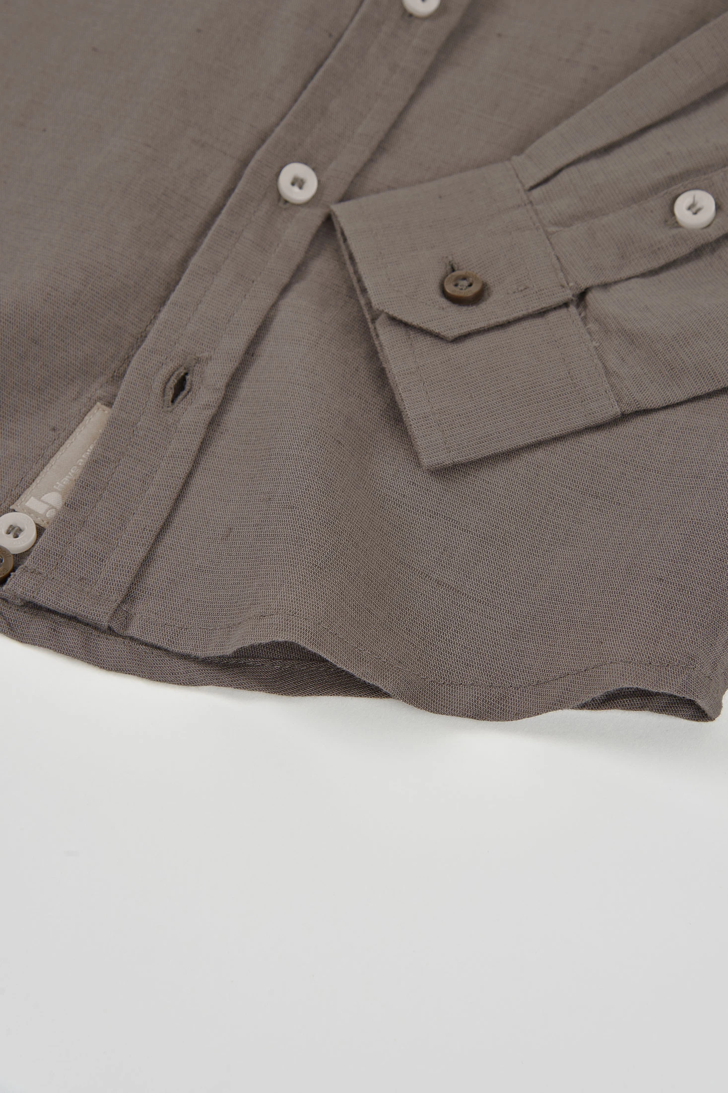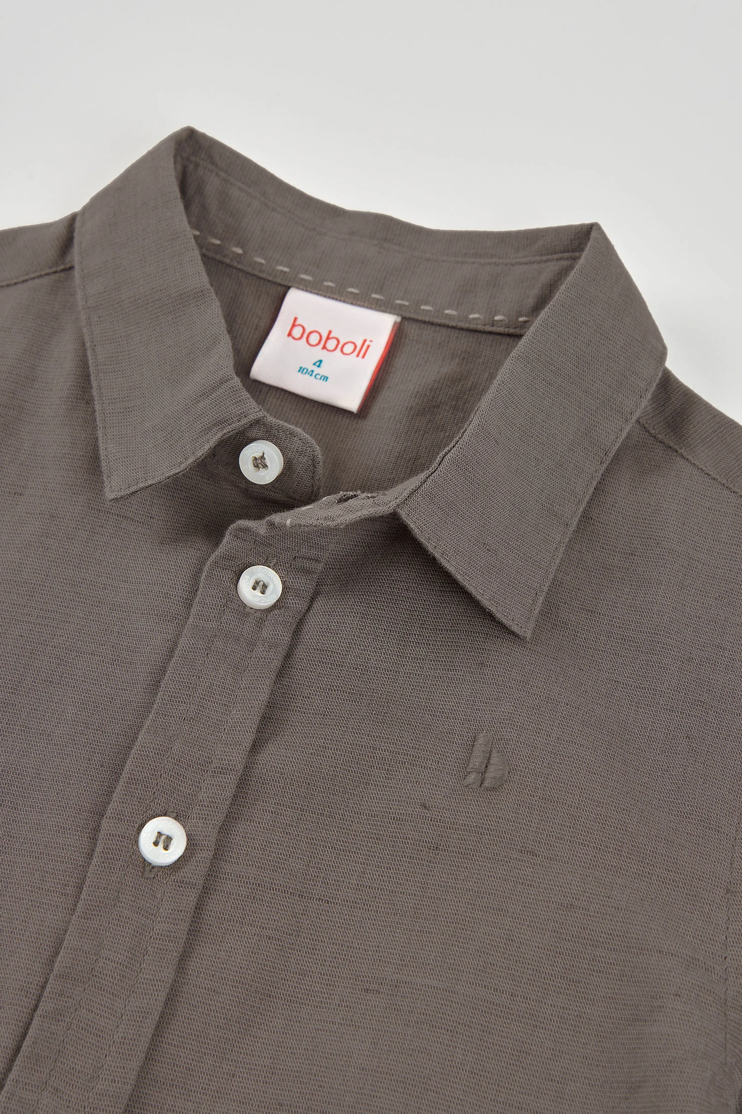 Camisa de lino en color marrón para niño, perfecta para eventos formales y ocasiones especiales. Con un diseño liso y elegante, cuenta con un cierre de botones y un cuello clásico que añade un toque sofisticado. Su tejido de lino aporta frescura y comodidad, ideal para climas cálidos. Disponible en tallas desde 12 meses hasta los 14 años. Se puede combinar con pantalones claros para un look moderno y elegante. Es una excelente opción para un estilo chic y refinado.
