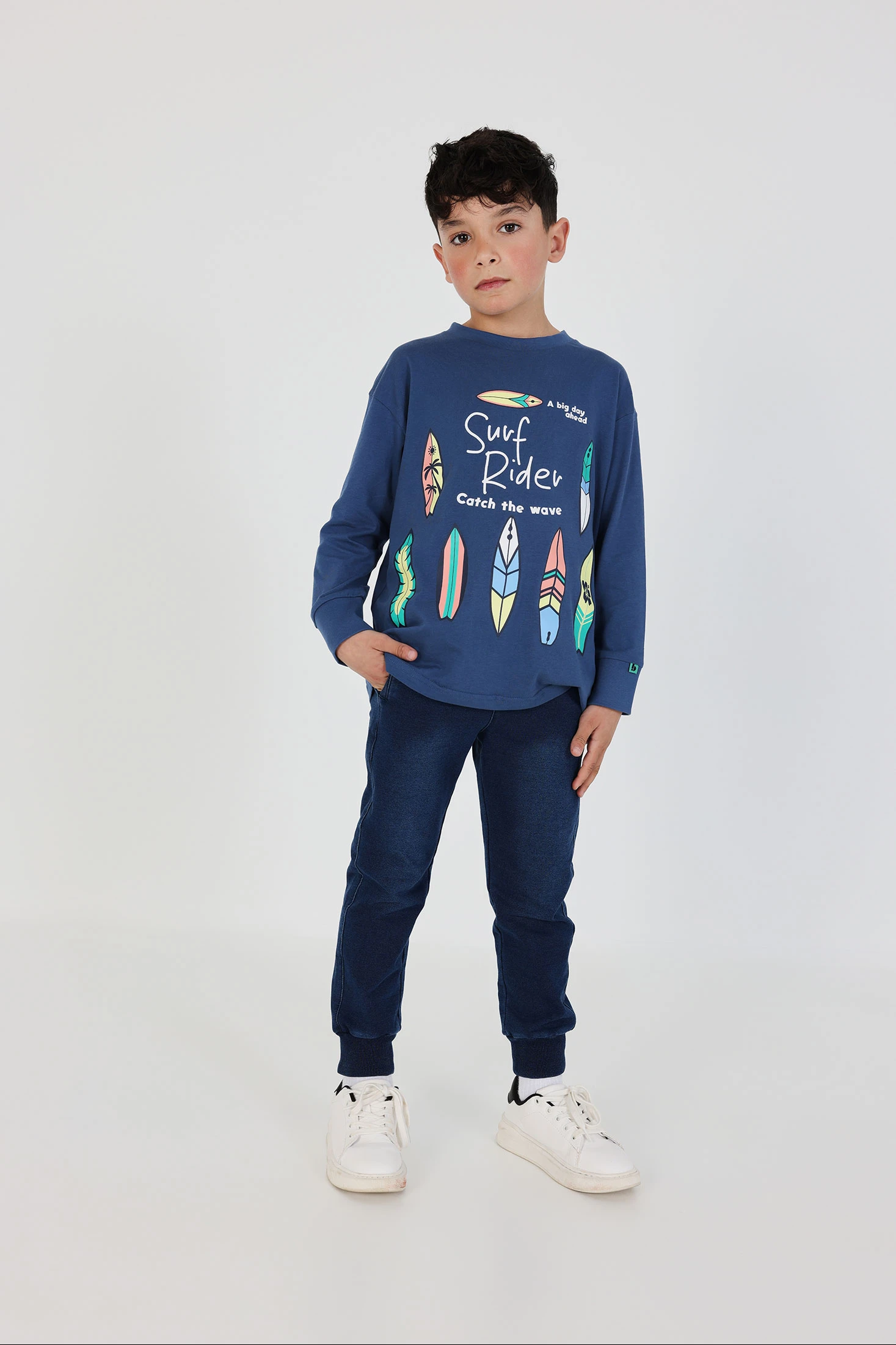 Pantalón de felpa denim para niño en color azul marino, diseñado para ofrecer un equilibrio entre comodidad y estilo. Su tejido de aspecto vaquero aporta un look actual, mientras que la felpa elástica garantiza suavidad y libertad de movimiento. Está confeccionado con una composición de 78% algodón, 15% poliéster y 7% elastano, que proporciona un ajuste confortable y duradero. Una prenda práctica y fácil de combinar, ideal para el uso diario.
