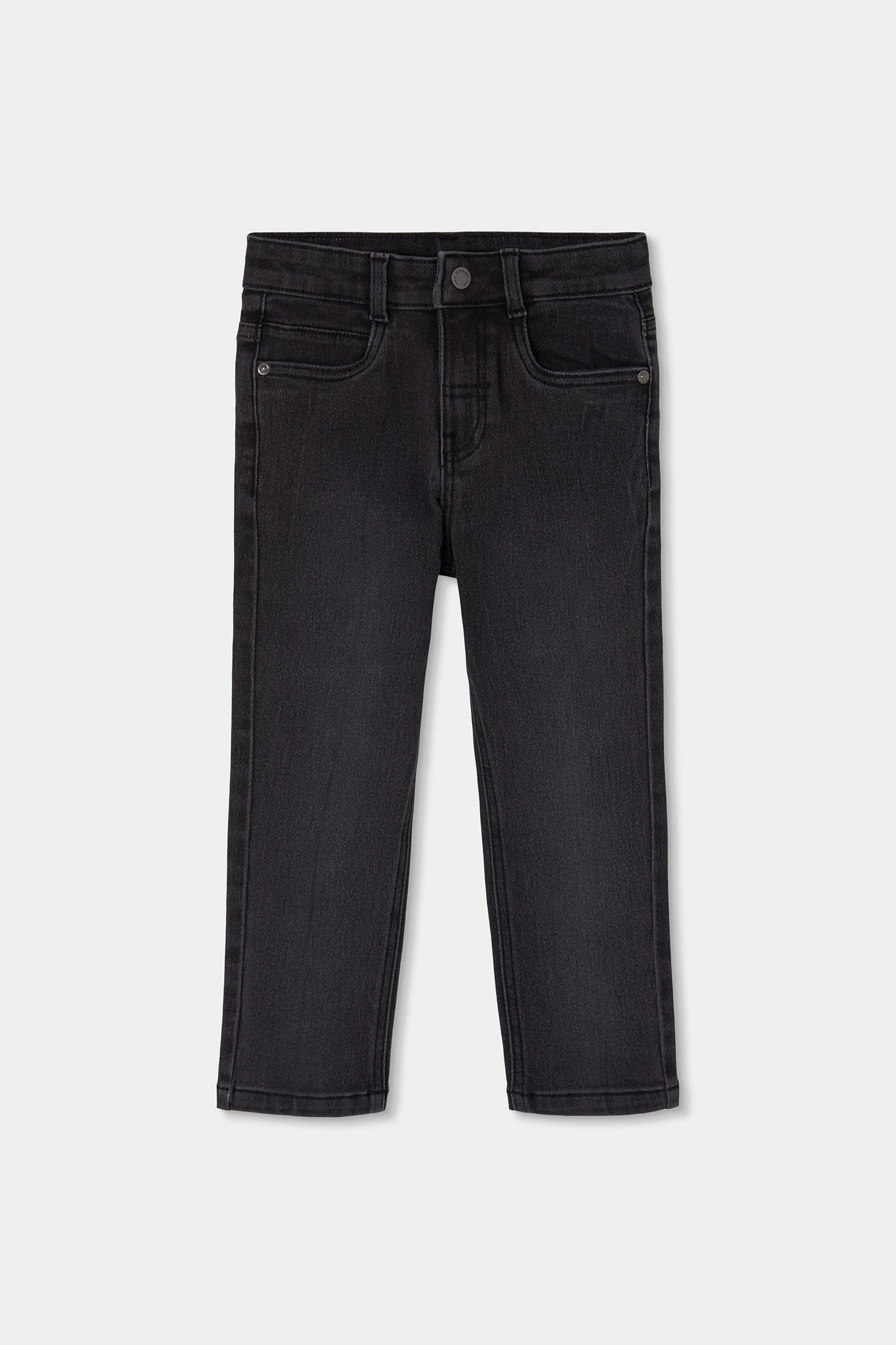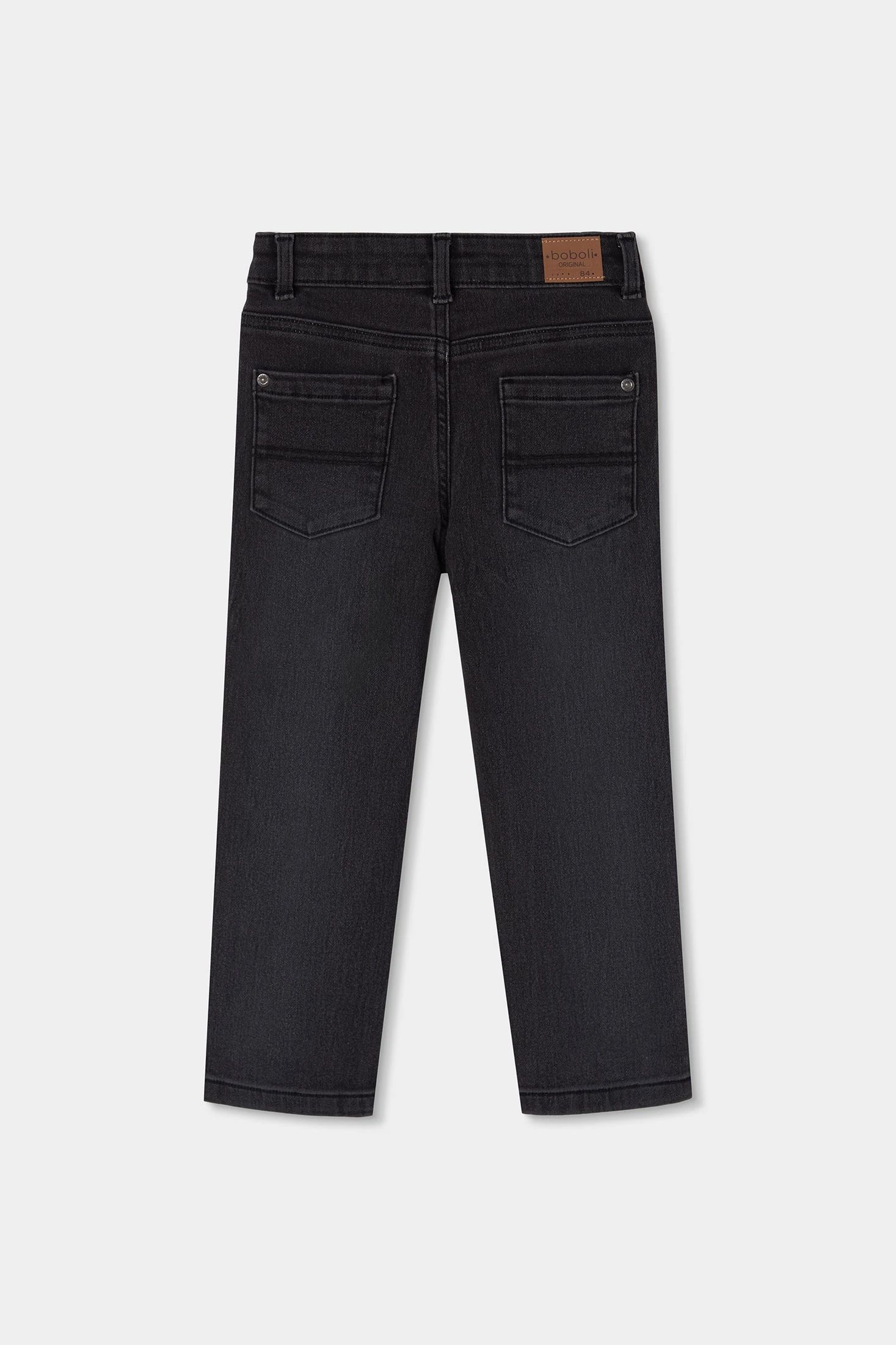 Pantalón denim elástico para niño en color negro, pensado para un uso cómodo y versátil. Su tejido vaquero flexible aporta un ajuste agradable que se adapta al movimiento, manteniendo una sensación confortable durante todo el día. Está confeccionado con una composición de 98% algodón y 2% elastano, lo que garantiza suavidad, resistencia y un ligero extra de elasticidad. Una prenda funcional, ideal para el día a día y fácil de combinar con diferentes estilos.