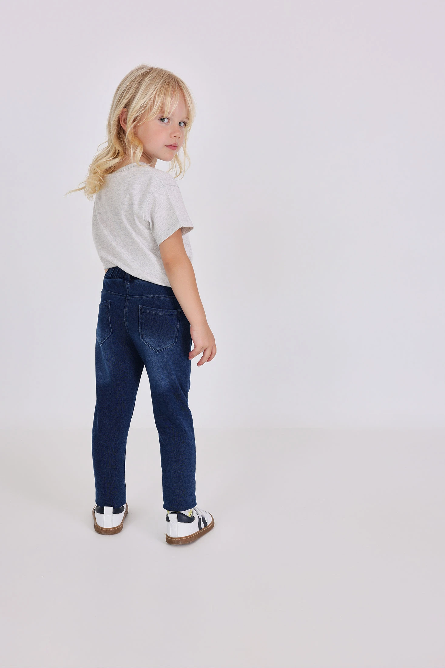 Este es un pantalón de felpa denim para bebé niña, ideal para el entretiempo. Su tejido de punto le da una textura suave y cómoda, perfecta para la delicada piel de los más pequeños. El diseño es liso, sin decoraciones, y de un bonito color azul. Este pantalón está disponible en una amplia gama de tallas, desde los 6 meses hasta los 8 años. Es una prenda versátil y fácil de combinar, que no puede faltar en el armario de tu pequeña.