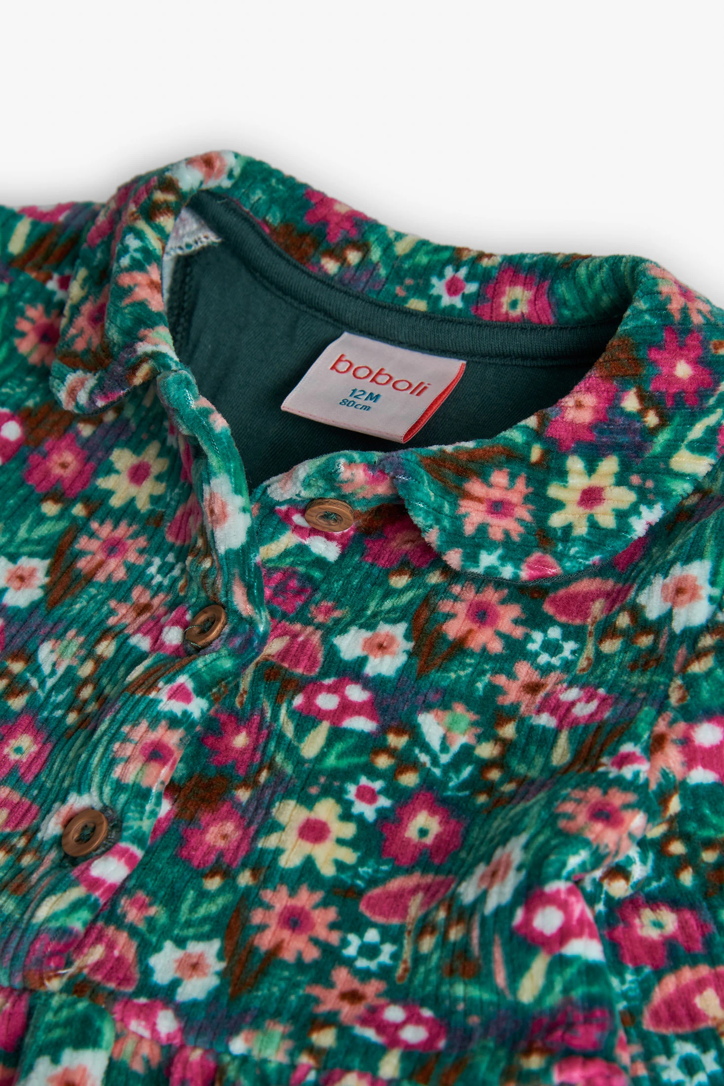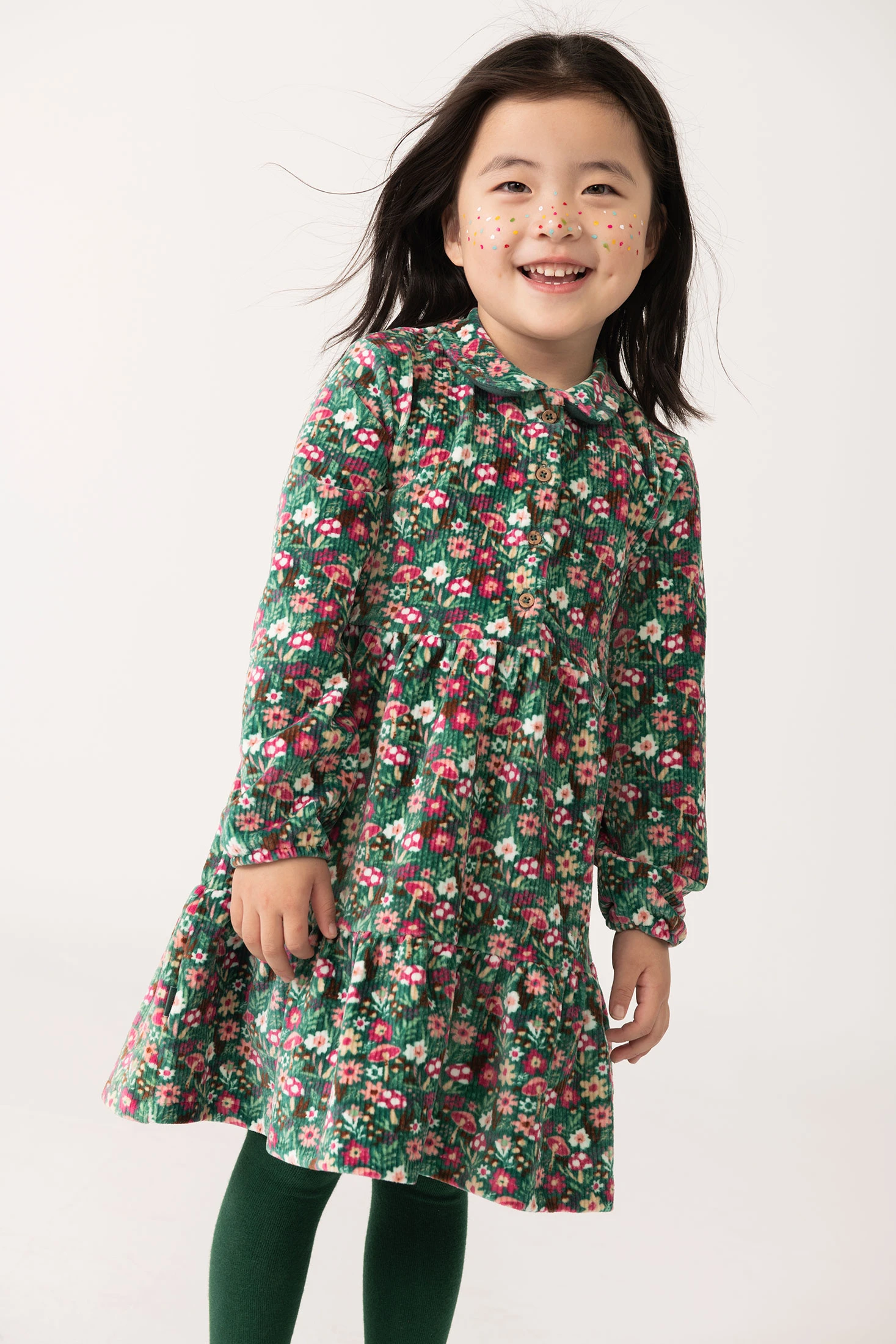 Vestido de punto con flores verdes para niñas, ideal para otoño e invierno, confeccionado en un suave tejido de punto que proporciona calidez y confort. Un encantador estampado de flores en tonos verdes lo hace perfecto para eventos especiales o salidas casuales. El diseño cuenta con un cuello redondo y mangas largas, lo cual lo hace ideal para días más fríos, y se cierra cómodamente con botones en la parte posterior. Disponible en tallas de 2 a 10 años, ofrece una elección versátil que combina fácilmente con medias o chaquetas, agregando un toque de frescura y color al armario de tu hija.