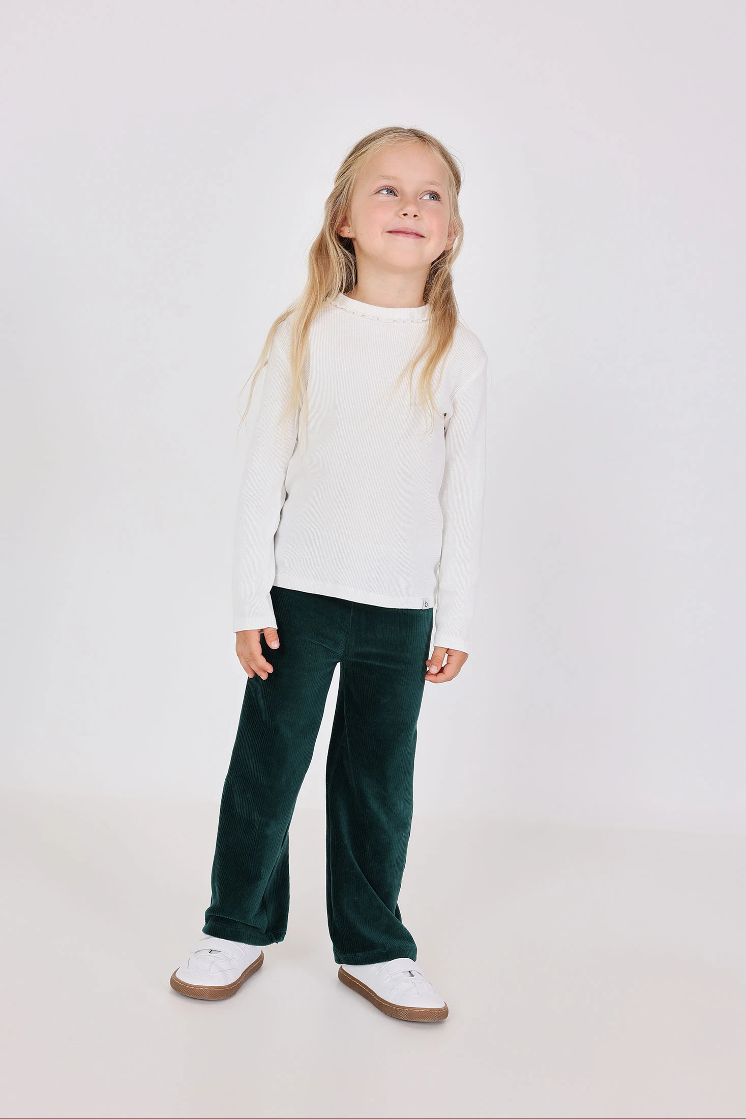 Pantalón de pana de punto para niña en color verde, elección ideal para las estaciones de otoño e invierno, brindando confort y calidez. Fabricado en suave tejido de punto, asegura comodidad durante todo el día. Su diseño elegante y versátil permite combinarlo fácilmente con otras prendas para looks tanto casuales como más formales. Disponible en tallas desde 12 meses hasta 10 años. Este pantalón se convierte en un básico imprescindible para completar el armario de cualquier pequeño.