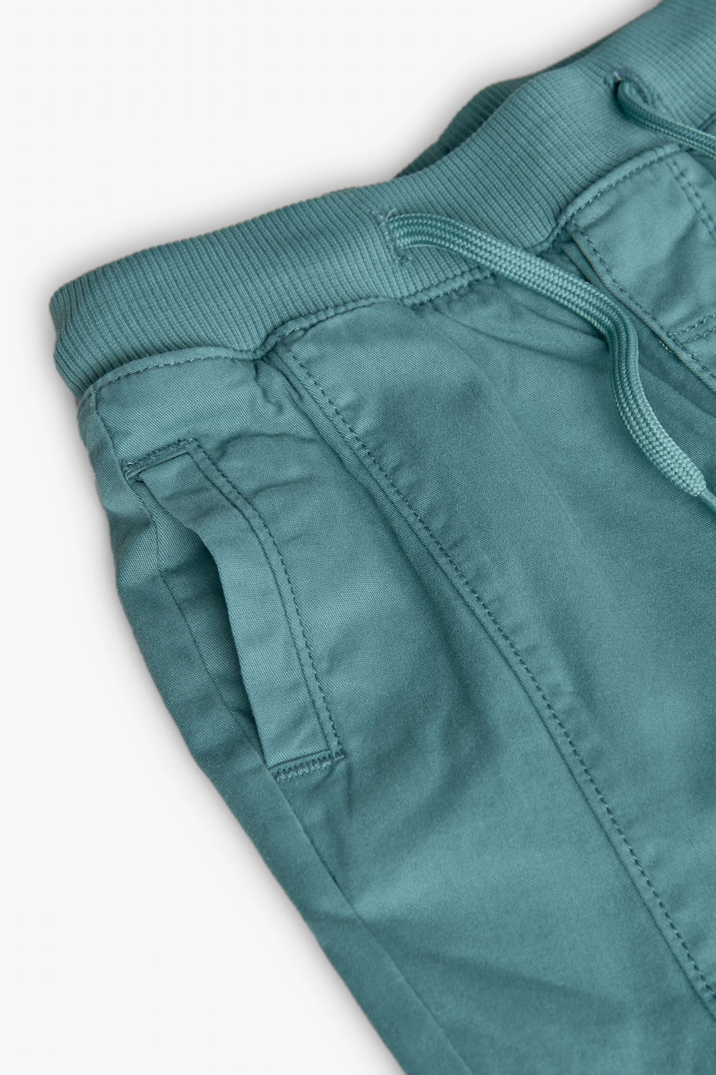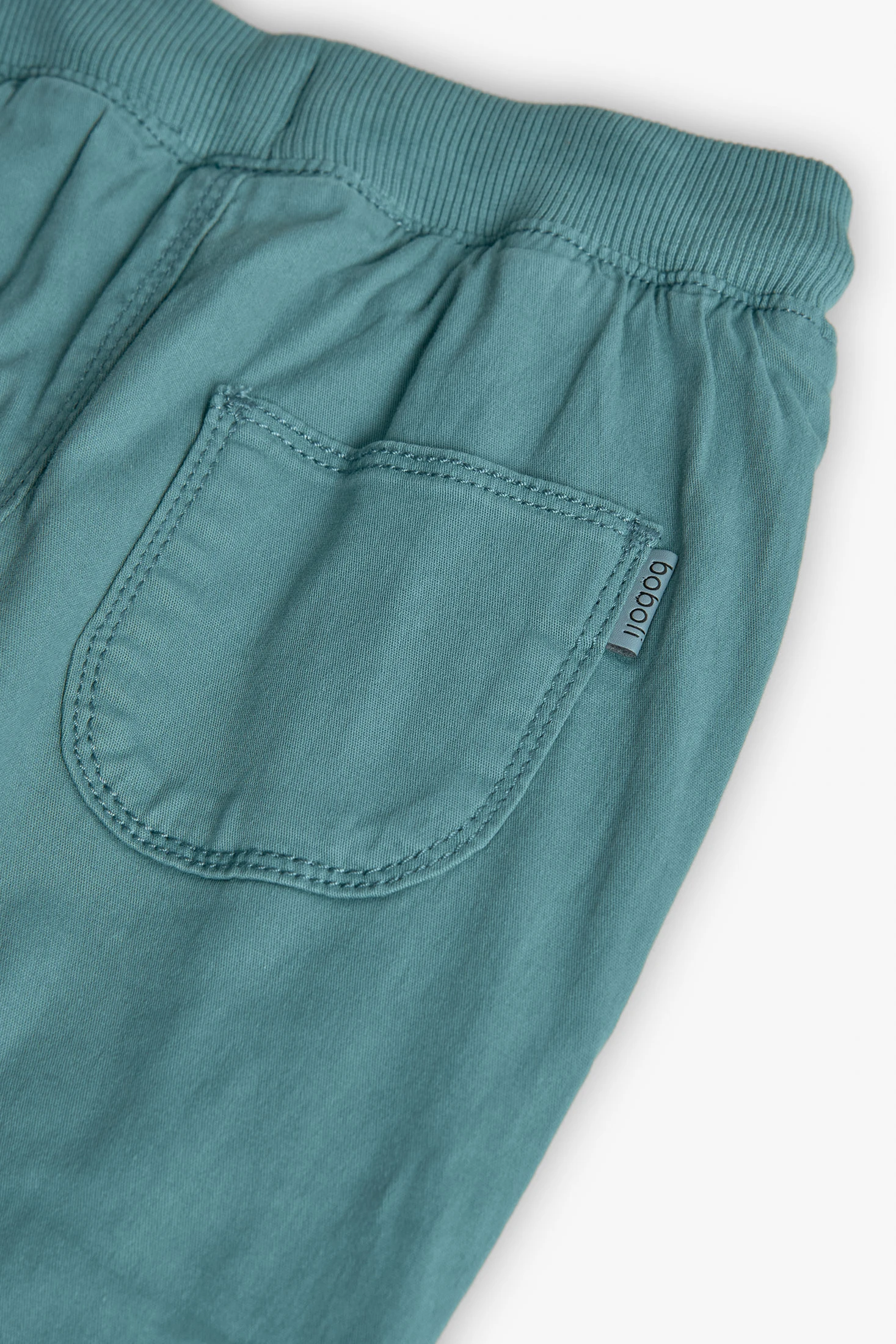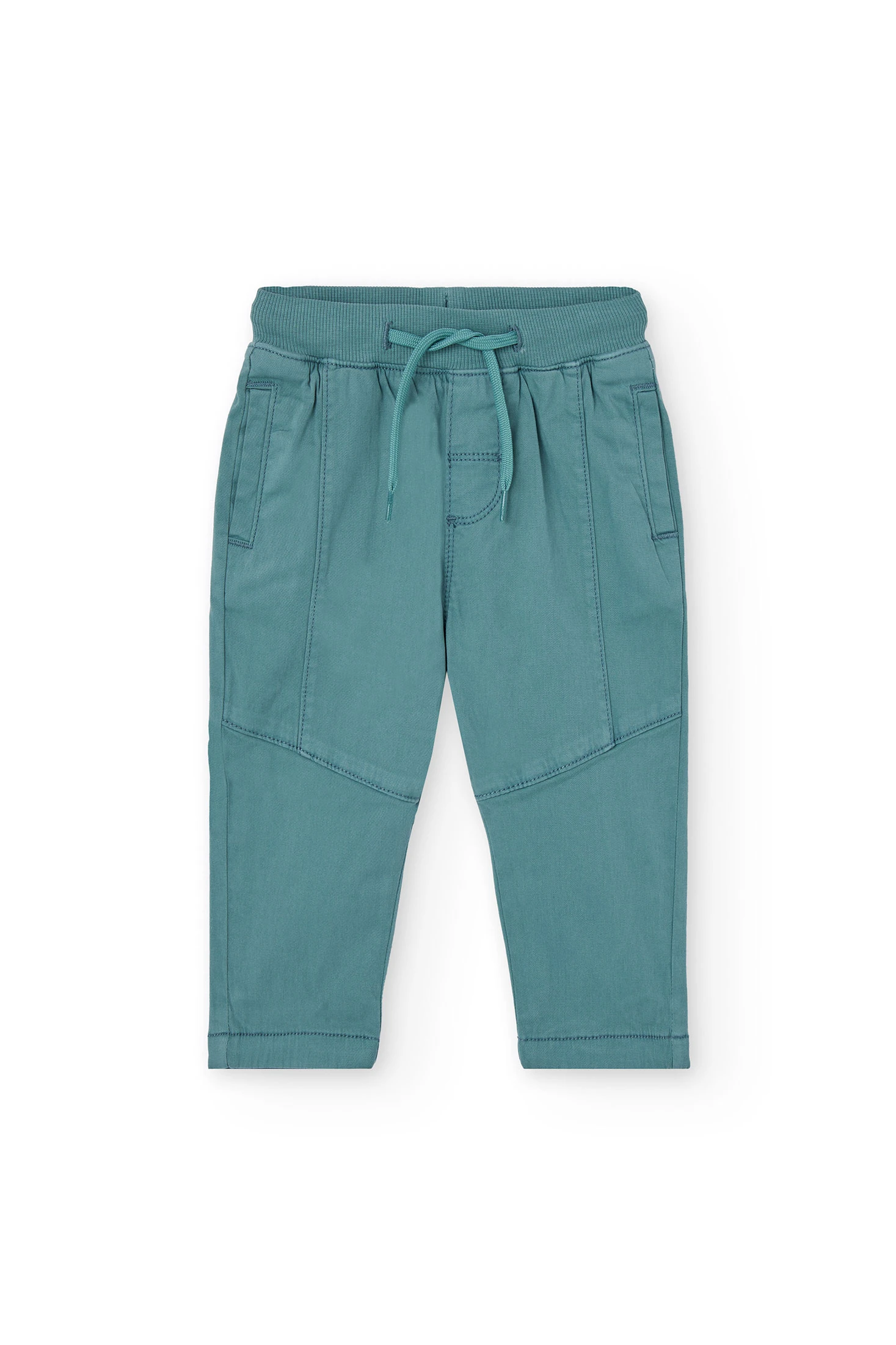 Pantalón de algodón elástico verde para niño, ideal para cualquier época del año gracias a su material ligero y permeable. Prenda versátil que garantiza comodidad y libertad de movimiento con su tejido elástico de alta calidad. Diseñado con una cintura ajustable, es perfecto para el uso diario y se adapta al crecimiento del pequeño. Disponible en tallas desde 12 meses hasta 10 años, se combina fácilmente con camisetas y suéteres, aportando un toque moderno y fresco a cualquier conjunto.