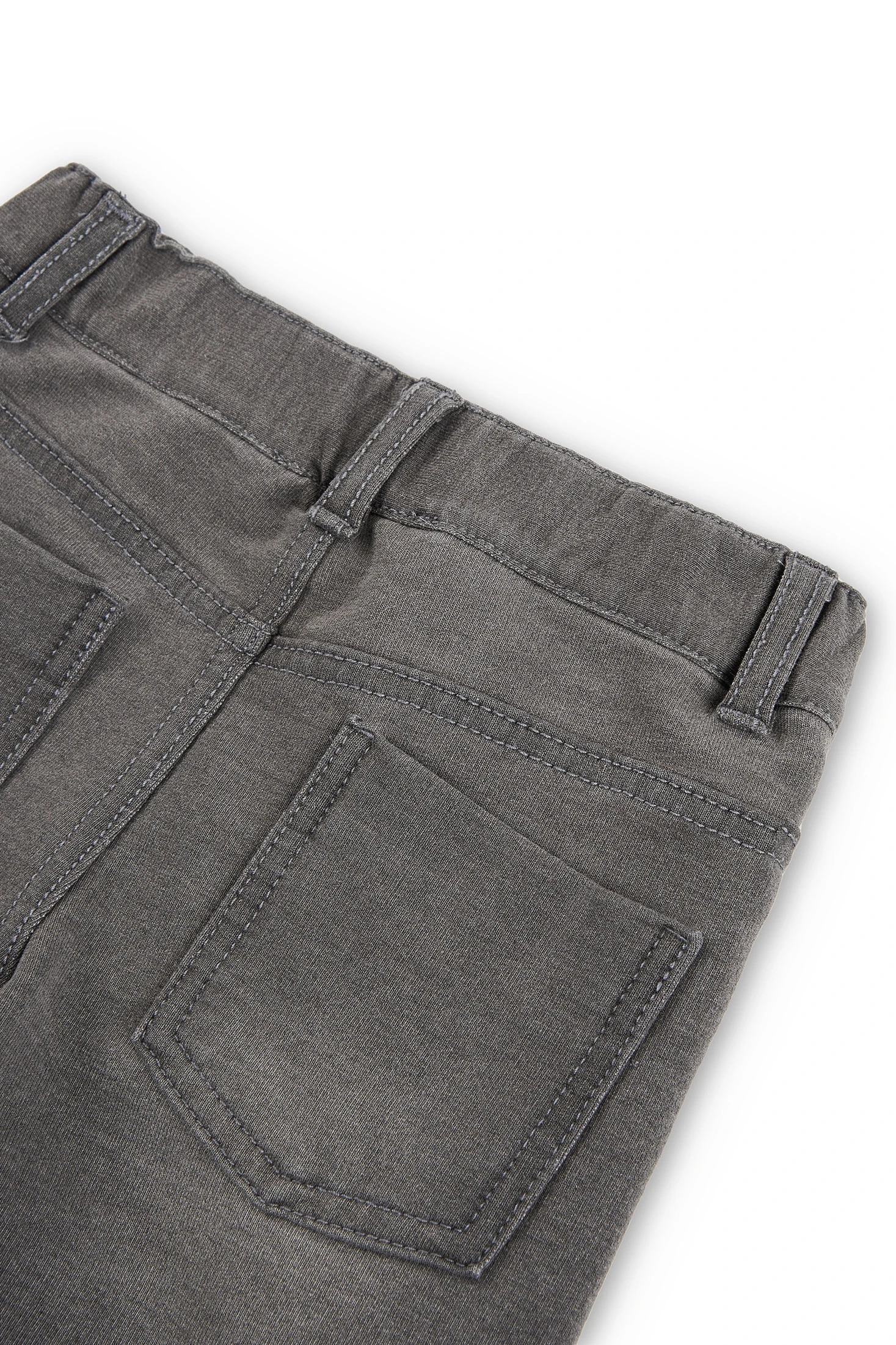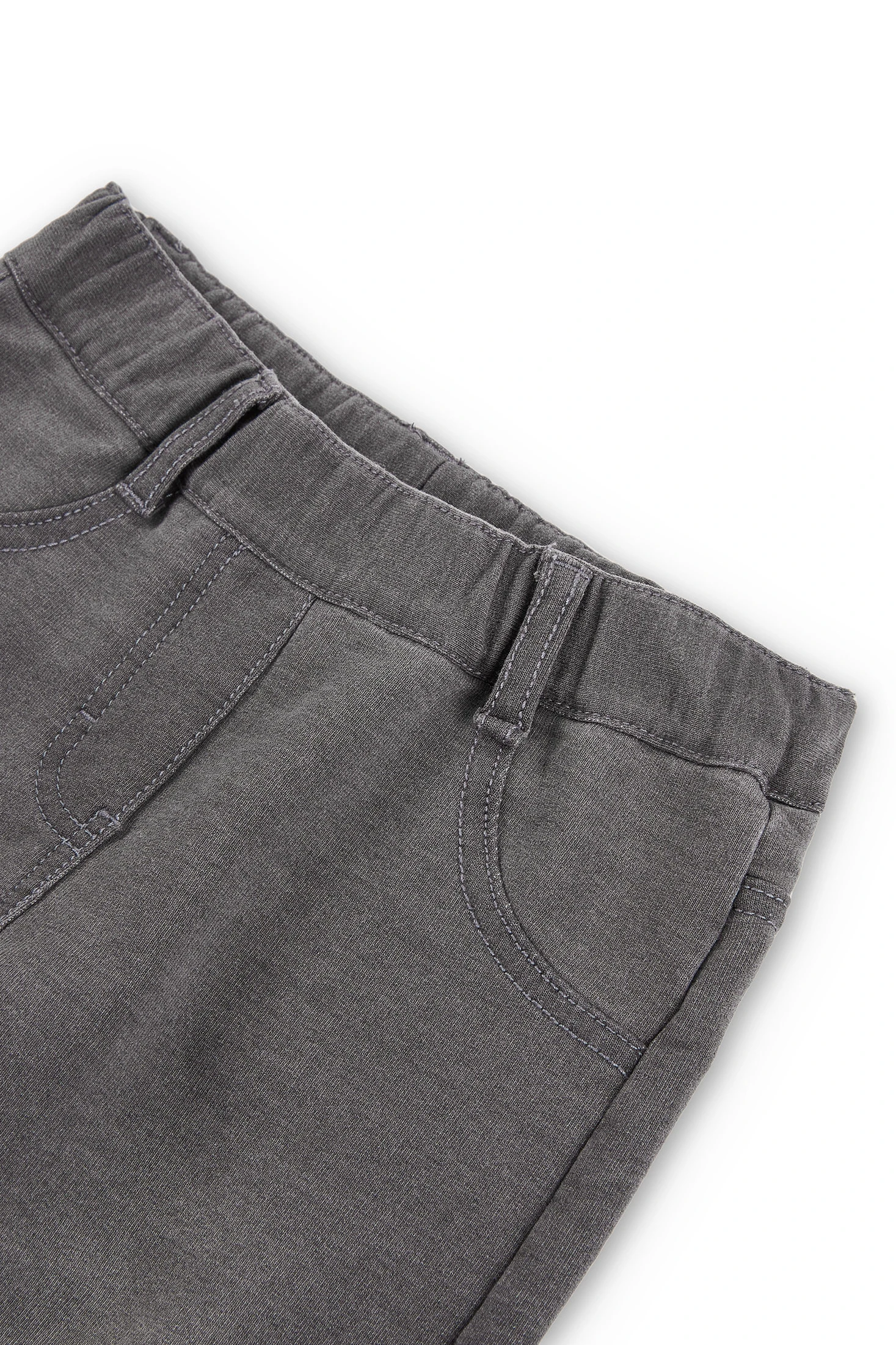 Pantalón de felpa elástica tejanera de niña en color gris, se ajusta con goma, los bolsillos delanteros y bragueta son de adorno. La decoración es una etiqueta con detalle de la marca. Esta prenda lleva unos desgastados que le dan un aspecto más envejecido. Disponible de la talla 4 años a 16 años.