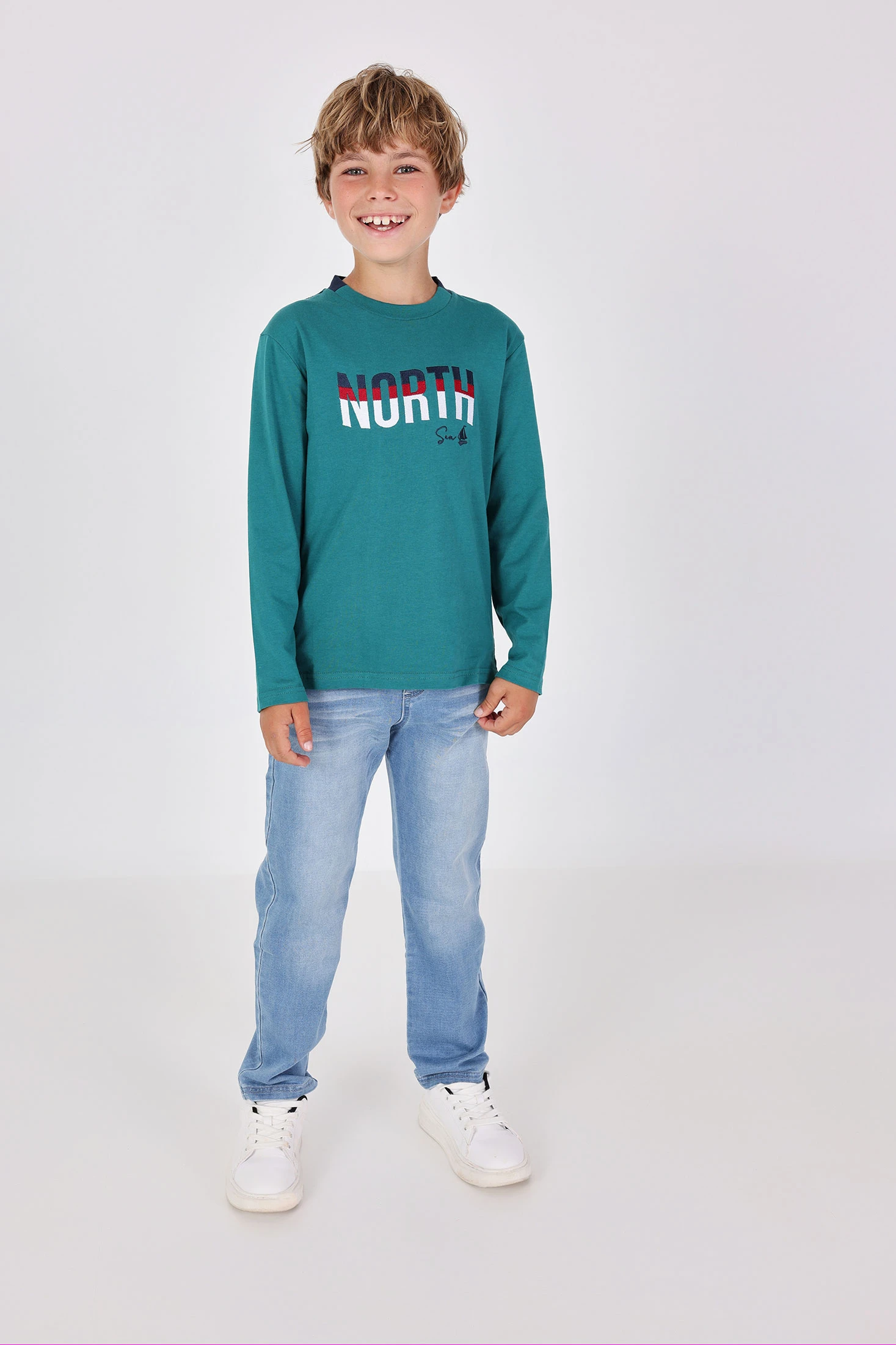Pantalón tejano de punto elástico de niño en color bleach, se ajusta a la cintura con goma. La decoración es una etiqueta con detalles de la marca. Esta prenda lleva unos desgastados y acabados que le dan un aspecto más envejecido. Disponible de la talla 4 años a 16 años.